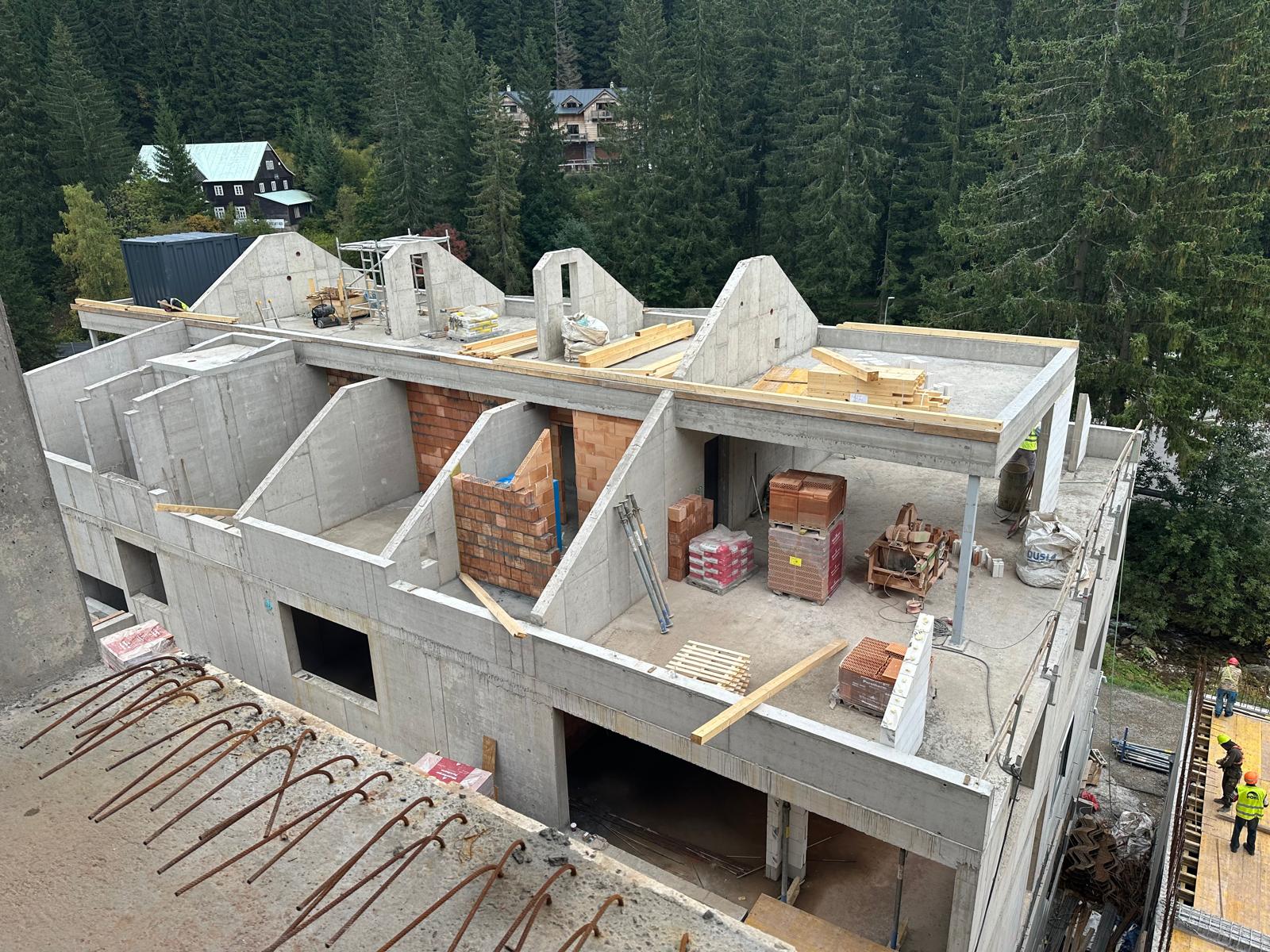 Začalo se pracovat na střeše a na osazování vnějších oken a dveří